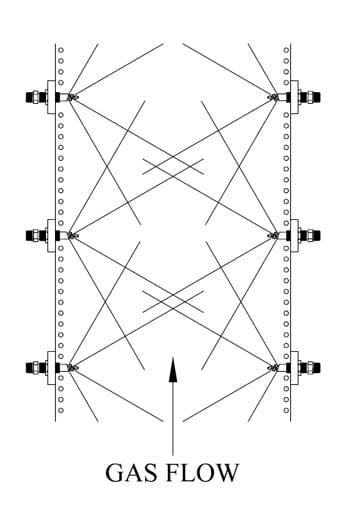 Bete的客户是一家造纸厂,想要改造其烟道气管的淬火部分。现有布置使喷嘴通过安装块安装并进入导管。每个喷嘴连接到其安装块,其具有直管螺纹,并通过锁紧螺母固定到位。虽然喷涂图案是一个简单的扁平风扇,但鼻子上的增加的长度和特殊的直管螺纹需要定制设计。此外,客户希望使用镍合金材料,由于现有316不锈钢喷嘴发生腐蚀。GydF4y2Ba