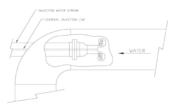 一位客户与BETE应用工程公司联系,提出了一个不同寻常的应用程序。他们正在寻找一种能够注入1500加仑/分钟(5678升/分钟)的水和一种化学物质的大喷嘴,有效地将两者混合在一起,形成一条更大的线。可用压力约为9psi (0.62 bar)。8“喷嘴将定位到喷洒计数器目前在48”线携带淡水湖。氨和次氯酸钠(漂白剂)将作为生产饮用水净化过程的一部分加入。gydF4y2Ba