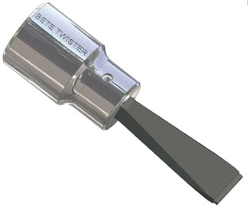 由于需要防止损坏卡住TD旋流组分时,Bete应用工程师开发了Bete Twister。Bete Twister是一种特殊的宽螺丝刀,足以容纳进入漩涡背面的插槽。Bete Twister在槽上更均匀地提供力量,以便它可以在最棘爪的喷嘴情况下移除漩涡,同时防止昂贵的损坏。GydF4y2Ba