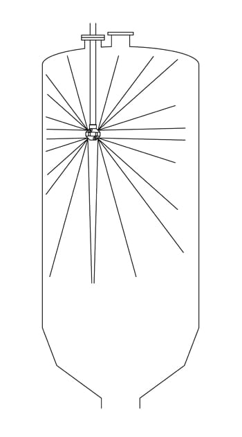 一家全球化学公司联系了BETE,希望用喷嘴冲洗几个含有塑料颗粒的垂直储存筒仓的内部。多个筒仓的直径和高度不同。在封头上的水箱连接是这样安排的,这样清洗喷嘴就不能放在中心。坦克墙的覆盖是重要的,但他们特别关心的是完全覆盖顶部头部的底部。所有的颗粒需要从内部表面清除,以消除交叉批污染。gydF4y2Ba