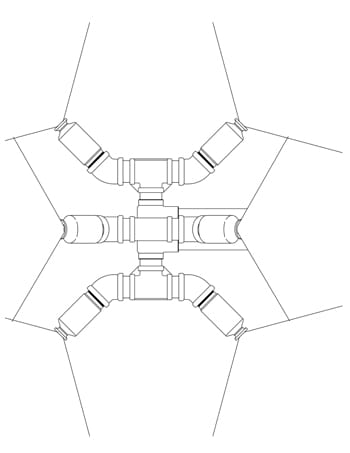 BETE应用工程师讨论GydF4y2Ba丛GydF4y2Ba对这种尺寸的油箱有足够覆盖的油箱清洗喷嘴。然而,由于需要将额外的液体引入槽中,因此需要将这些额外的液体全部用于清洗槽,从而最大限度地利用这些液体。建议安装BETEGydF4y2BaMaxiPassGydF4y2BaTh系列接线盒中的喷嘴。接线盒通常用于池塘冷却和蒸发处理应用,但在316s中可用,可以随时使用多个插座。Bete引用了4英寸接线盒,4 -GydF4y2Ba2”MP1125MGydF4y2Ba以及带4-2½“MP1500W的6”接线盒。扩展这个概念,aGydF4y2BaClump 1500.GydF4y2Ba水箱清洗喷嘴可以装配在720°范围内,流量1900加仑/分(7200升/分钟),压力为20 psi (1.38 bar),清洗直径为36英尺(11米)。GydF4y2Ba
