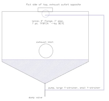 该公司已经购买了大型塑料圆柱水箱,他们旨在用作擦洗“塔”。这些坦克只有一个平坦的区域,很容易容纳任何连接。Bete应用工程师提供了一种使用许多咖啡焙烧器现有组件的擦洗系统的草图。这种洗涤器的理想喷雾图案是使用三个矛盾的七喷嘴阵列GydF4y2BaTF喷嘴GydF4y2Ba然而,水箱只能容纳一个喷枪。因此,BETE应用工程师设计了一种单喷枪,可以模拟三个喷枪,形成七喷嘴阵列的喷雾模式。GydF4y2Ba