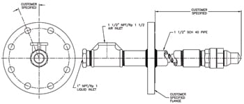经过比较和分析Bete TF系列喷嘴的比较GydF4y2BaSpiralair系列GydF4y2Ba喷嘴,Bete工程师决定空气雾化仍然是最佳选择。空气雾化喷嘴以较高的流速和比单流体喷嘴更低的流体压力提供较小的液滴尺寸。bete.GydF4y2Baspiralair.GydF4y2Ba具有等效液体流速的喷嘴仅在几乎完全相同的流体和空气压力下运行时消耗为竞争对手的喷嘴的1/3。这是每年2,600美元的估计节省2,600美元。在50 psi(3.4 bar)空气中运行的1½“spiralair 2301-b-10设立,61 psi(4.2 bar)水流量约为20 gpm(76升/分钟)水和30 scfm(48.4nm³/ hr)空气。五1½“GydF4y2Baspiralair.GydF4y2Ba2301-B-10组件被设计为直接替代到烟道气系统中。GydF4y2Ba